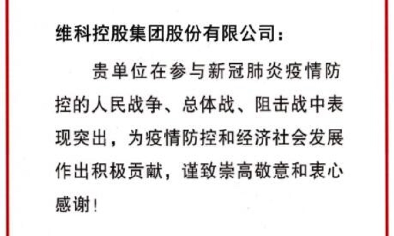 再獲殊榮——2020年抗擊新冠疫情突出貢獻單位