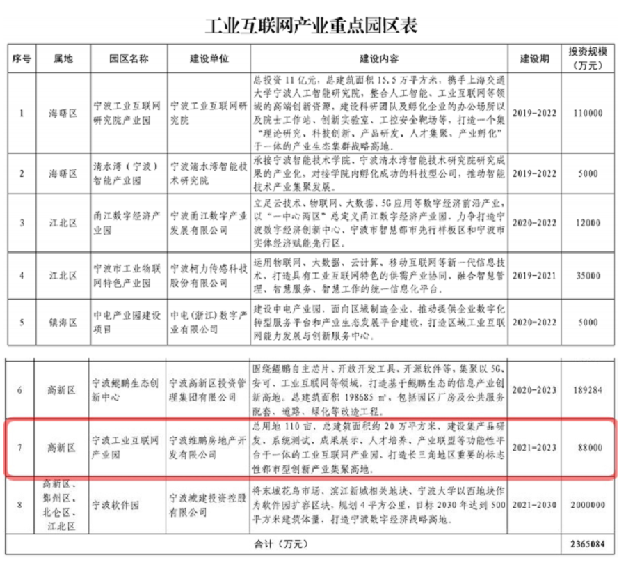 2021年7月2日,寧波市制造業(yè)發(fā)展高質(zhì)量領(lǐng)導(dǎo)小組辦公室印發(fā)關(guān)于《寧波市打造工業(yè)互聯(lián)網(wǎng)領(lǐng)軍城市建設(shè)方案》的通知,由維科集團(tuán)房產(chǎn)事業(yè)部下屬寧波高新區(qū)云羿開(kāi)發(fā)建設(shè)有限公司投資建設(shè)的高新項(xiàng)目(即寧波工業(yè)互聯(lián)網(wǎng)產(chǎn)業(yè)園)被該建設(shè)方案列為寧波市工業(yè)互聯(lián)網(wǎng)領(lǐng)域八個(gè)重點(diǎn)園區(qū)之一。