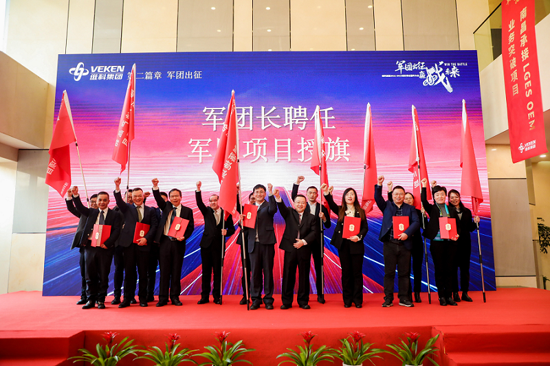 隨后,大會進入奮斗誓師高潮。在總裁呂總的帶領下,新聘干部、軍團長一起進行了就職宣誓。就職宣誓結束后,與會成員全體起立,一起振臂誓師,激勵全體員工在新戰略引領下展現新擔當、新作為,創效增效、協同合作,大力弘揚維科奮斗者精神,踐行維科文化價值觀。
