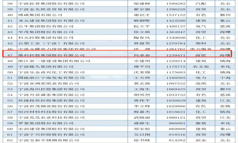 近日,寧波市企業聯合會、寧波市企業家協會、寧波市工業經濟聯合會共同發布了2023寧波企業綜合百強榜,以及制造業、服務業、競爭力百強榜。維科集團榮獲2023寧波市綜合企業百強第47名, 2023寧波市服務業企業百強第14名,再次彰顯企業綜合實力。