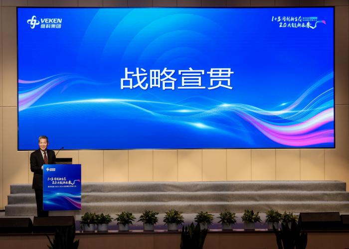 戰略是連接“組織現狀”與“未來目標”的橋梁,是集團發展規劃與資源配置的行動綱領。會上,集團董事長何董作《2024年維科集團綠色能源科技戰略生態》宣貫。何董從戰機、能力、團隊,聚焦新能源、突破新項目,構建綠色能源戰略生態,人成事、事成人等方面對集團綠色能源科技戰略生態進行了詳細闡述,指出1+3責任人及項目團隊肩負著八大集團級重點項目的重任,這是對執行力的考驗,更是集團戰略落地的決定性一步。在推動項目的過程中,何董期待更多的2.0、3.0團隊能夠如雨后春筍般涌現。這些項目的成功將促成集團戰略生態的形成,打造一個充滿活力、協同發展的生態系統,讓集團的各項業務在這個生態中相互支持、共同成長。