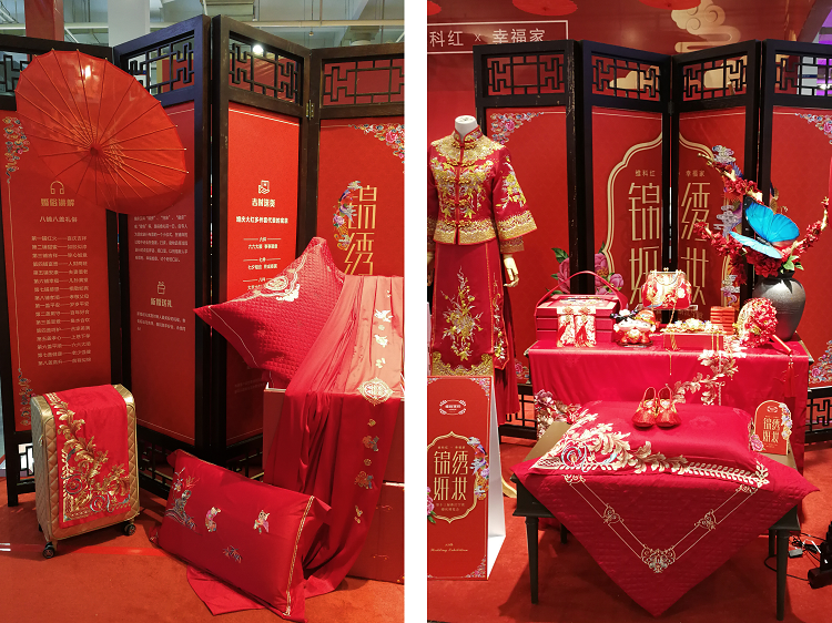 首次亮相婚博會的維科家紡主題婚慶館內以《錦繡妍妝》為主題,為新人傳遞“維科紅X 幸福家”的幸福理念,精美的陳列與華麗的婚慶床品相結合,呈現傳統婚禮的濃濃中國風味,迎來了現場眾多新人們的咨詢與圍觀,短短兩天時間,便收獲了數十位意向客戶。