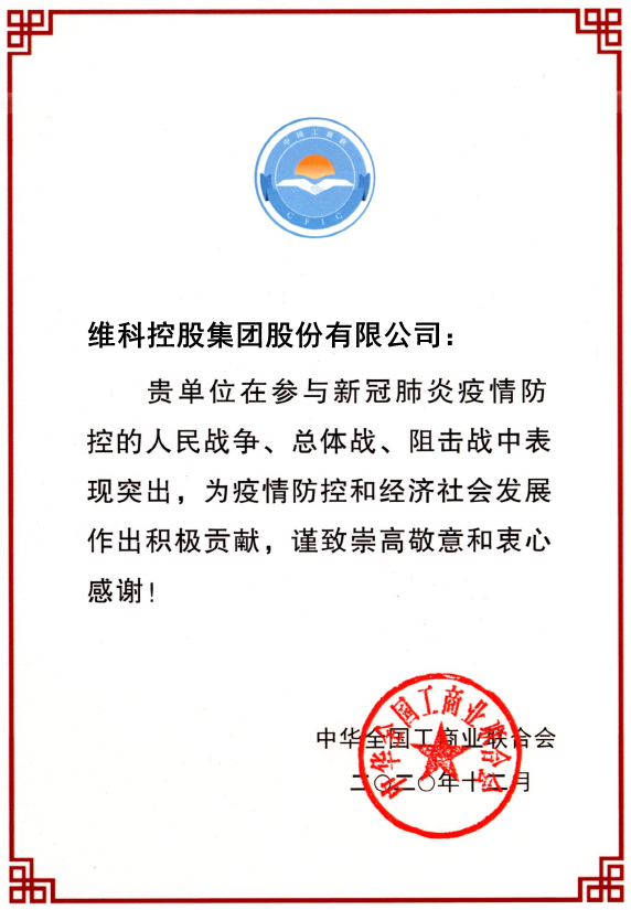 最近、全國工商連合會は、新型コロナウイルスの流行の予防と抑制に積極的に貢獻した先進企業を表彰しており、Vekenもその中に含まれています。