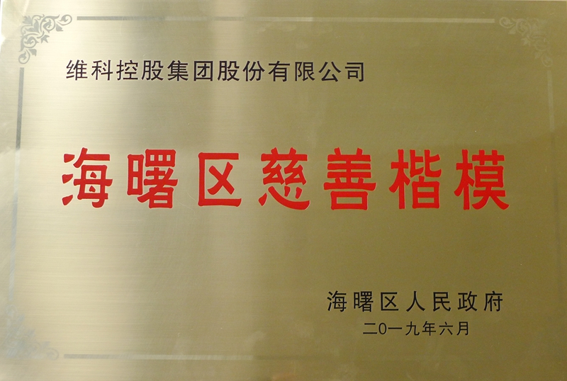 2019年6月11日午後、海曙區(qū)政府は2019年慈善活動會議を開催した。団結(jié)互助、貧困扶助の慈善文化を大いに発揚(yáng)し、社會各界の公益に熱心で、貢獻(xiàn)に好む良好な気風(fēng)を唱道するため、會儀中海曙區(qū)人民政府は公益慈善分野で際立った貢獻(xiàn)をした企業(yè)?事業(yè)體、郷鎮(zhèn)、街道、コミュニティ及び個(gè)人を表彰し、維科持株グループ株式會社は「海曙區(qū)慈善模範(fàn)」の稱號を獲得した。